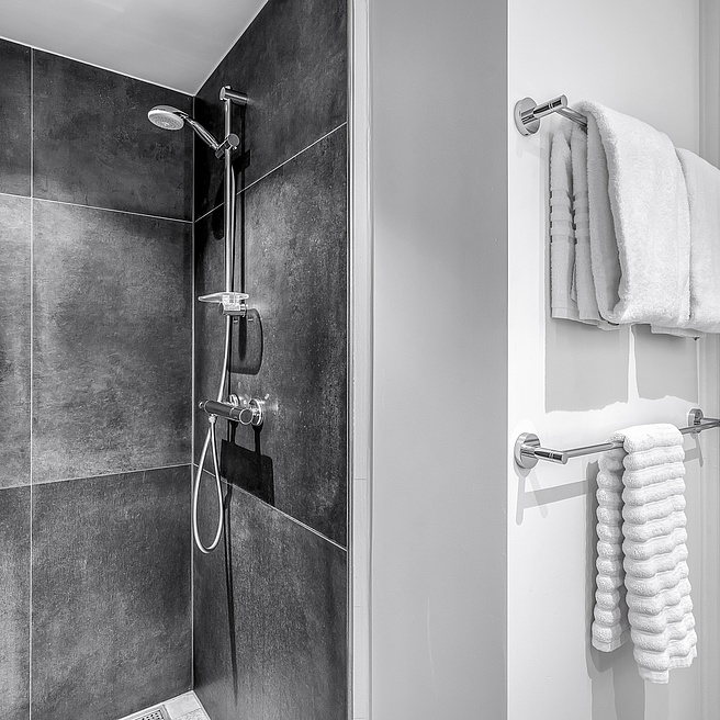 The rooms are equipped with a work desk, flat-screen with satellite TV and radio channels, telephone, minibar, iron and ironing board, hairdryer and free Wi-Fi. Each bedroom has coffee and tea making facilities and if we don’t have your favourite in the room, then just contact the reception staff. All our room rates include a large sumptuous breakfast buffet.