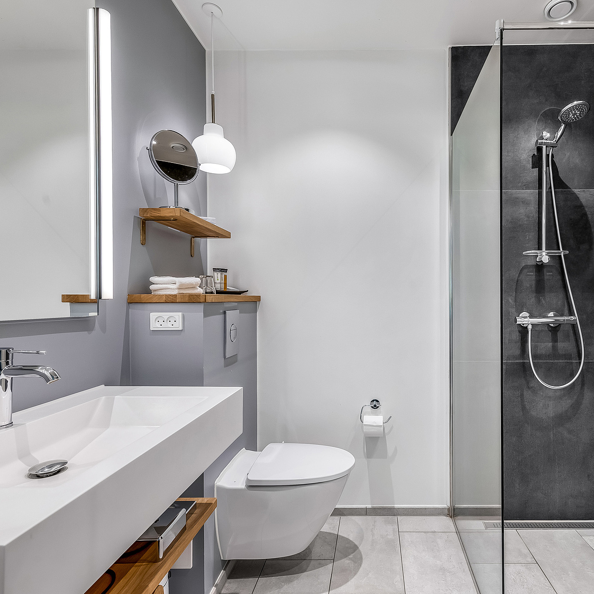 The rooms are equipped with a sofa-bed for 2, work desk, flat-screen with satellite TV and radio channels, telephone, minibar, iron and ironing board, hairdryer and free Wi-Fi. Each bedroom has coffee and tea making facilities and if we don’t have your favourite in the room, then just contact the reception staff. All our room rates include a large sumptuous breakfast buffet.