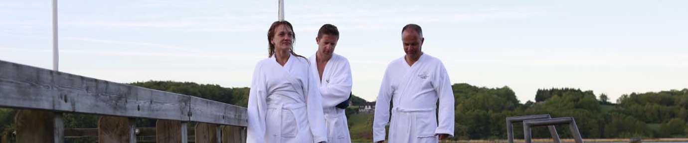 Året rundt kan I bade fra Hotel Koldingfjords egen bådebro, og vi sørger naturligvis, uanset årstiden, for både badekåber og slippers - samt den røde løber.