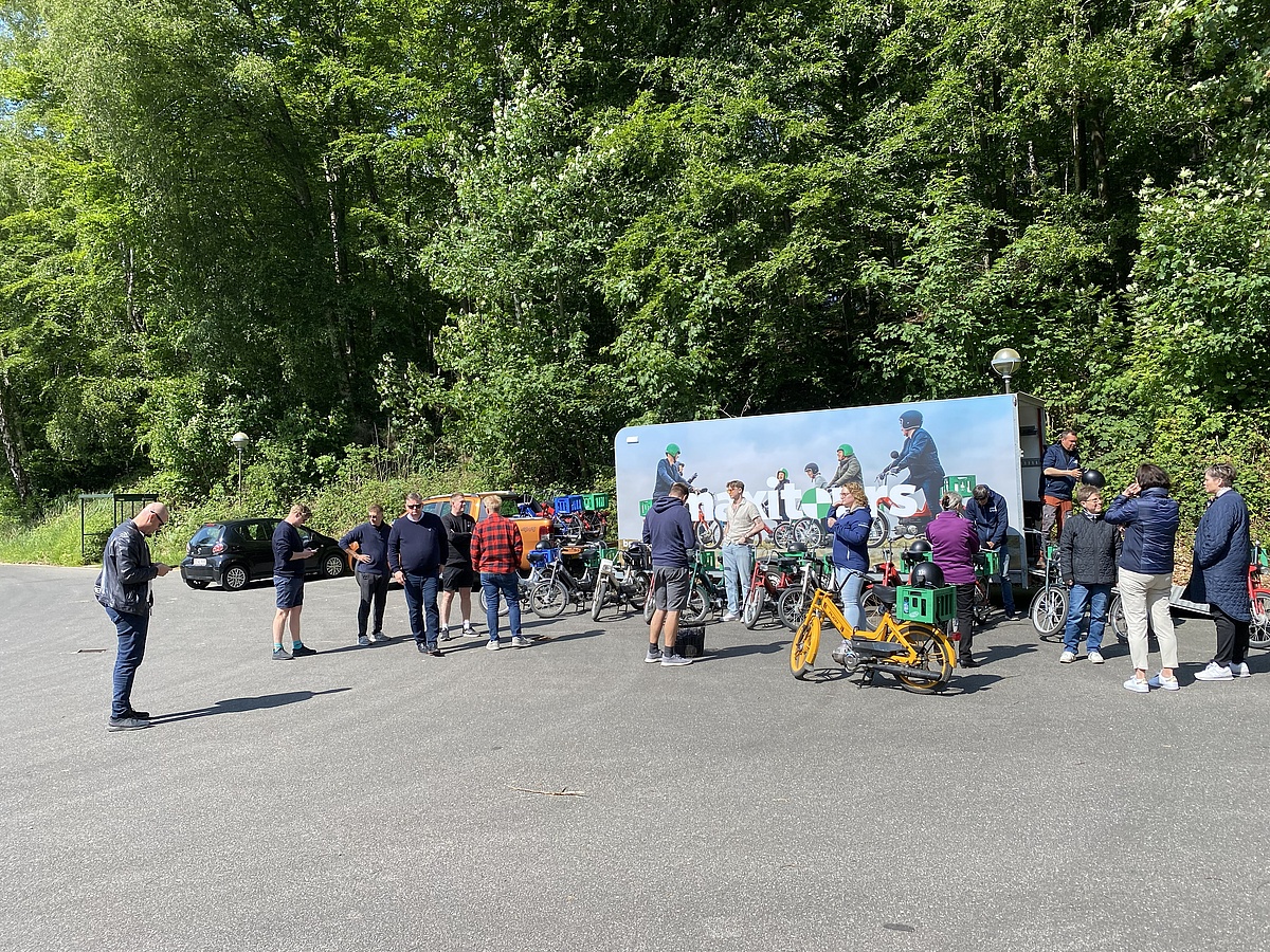 De gamle på holdet fortæller røverhistorier om deres egne Puch Maxi-oplevelser i ungdommen. Og de unge elsker retro-følelsen og et unikt billede til Instagram.