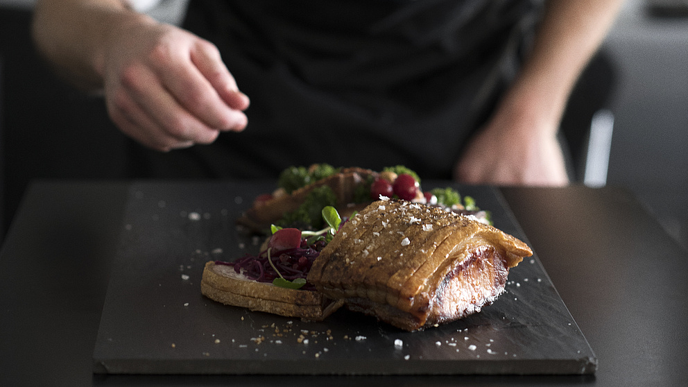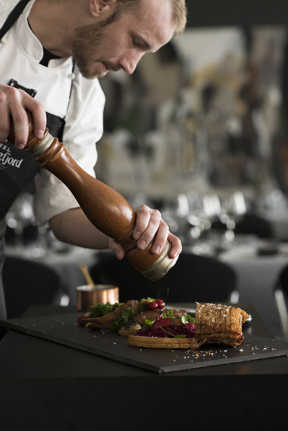 Maden tilberedes med sæsonens bedste råvarer og serveres i stemningsfulde omgivelser