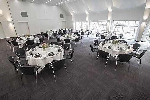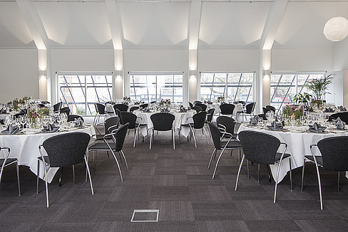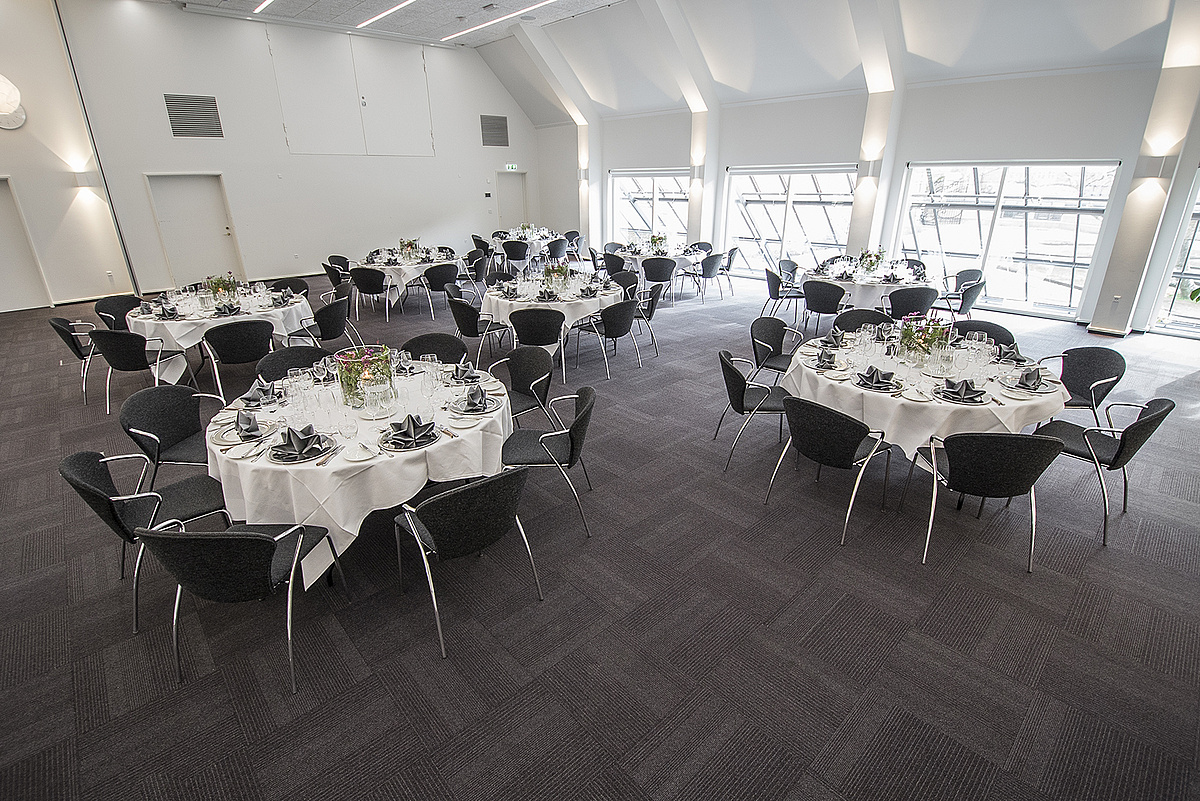 Denne sal ligger separat i bygningen modsat hovedbygningen op mod vores fredsskov. Et lokale, der byder på højt til loftet og med egen hyggelig og charmerende veranda i umiddelbar tilknytning til salen.
