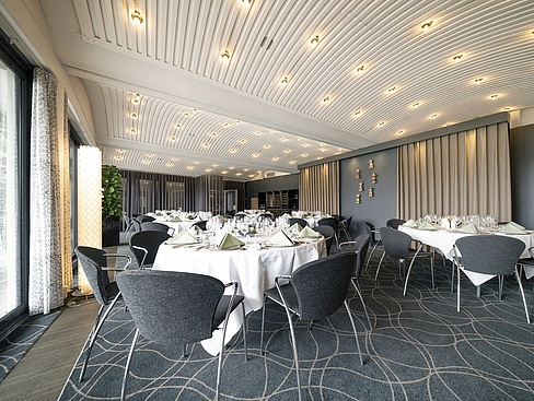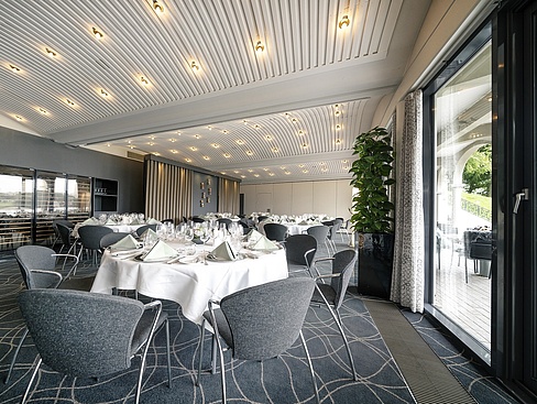 Restaurant Koldingfjord 1 ligger placeret i med direkte udgang til den smukke terrasse fra hovedbygningen og har panoramaudsigt ud over fjorden.