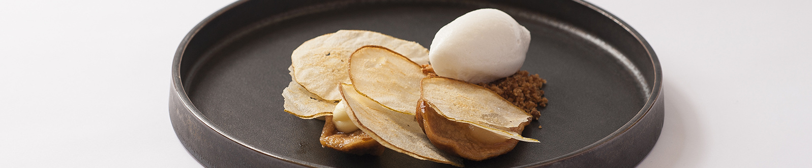 Rens rodfrugterne og skær dem i tynde skiver på mandolinjernet, udvandes i koldt vand i minimum 30 minutter. Tages herefter op af vandet og tørres på viskestykke eller køkkenrulle.