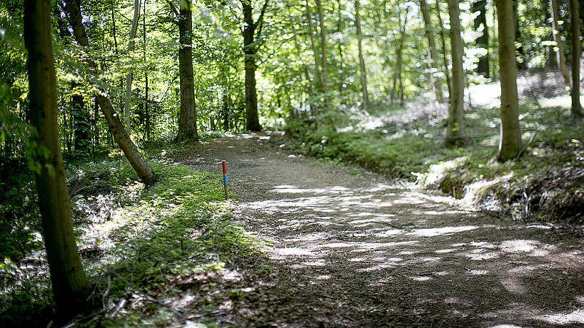 Vi bor direkte ned til Kolding Fjord - omkranset af 28 hektar fredskov. Her er højt til loftet og plads til at være til.