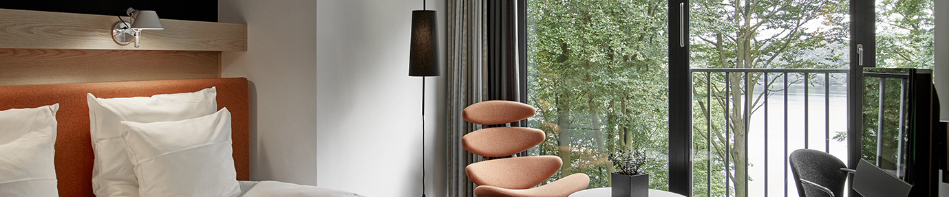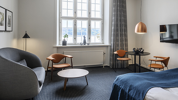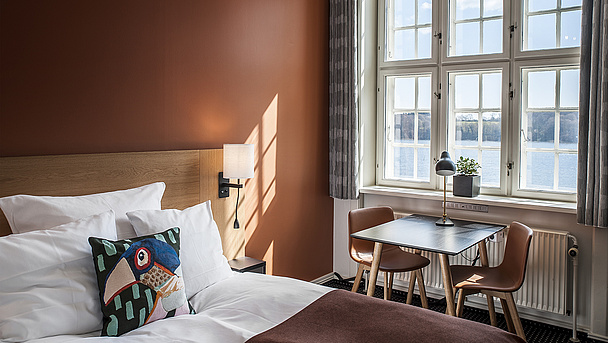 Her er ikke to værelser helt ens - alle vores 132 værelser har sin egen stemning og charme. Du finder værelser med fjordudsigt eller udsigt til fredfyldt skov - med små ovale vinduer eller panoramaudsigt fra gulv til loft.