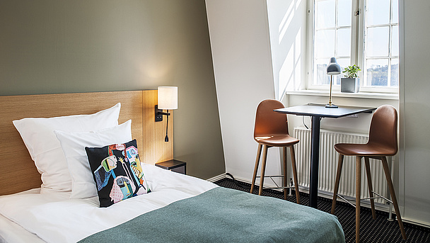 Vælg din favorit blandt vores værelsestyper, og reservér dit værelse til næste gang, du har brug for overnatning i forbindelse med et møde eller konference i Kolding.