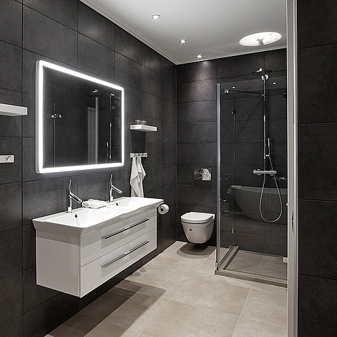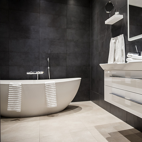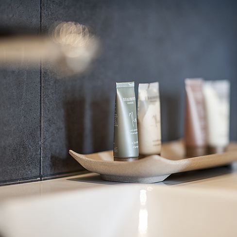Begge suiter er indrettet med et separat soveværelse, en opholdsstue med spisebord, et gæstetoilet samt et badeværelse med badkar og bruser. Som lidt ekstra luksus er der badekåbe og slippers på værelset.