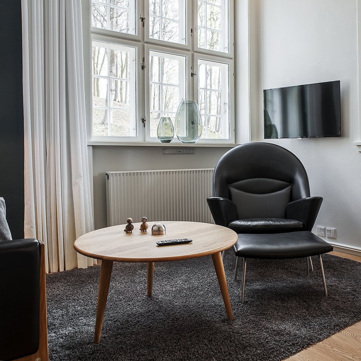 Suiterne, som er placeret i hotellets hovedbygning, er smukt indrettede med danske møbelikoner fra møbelarkitekterne Hans J. Wegner og Finn Juhl, og har begge egen balkon samt direkte udsigt til Kolding Fjord.